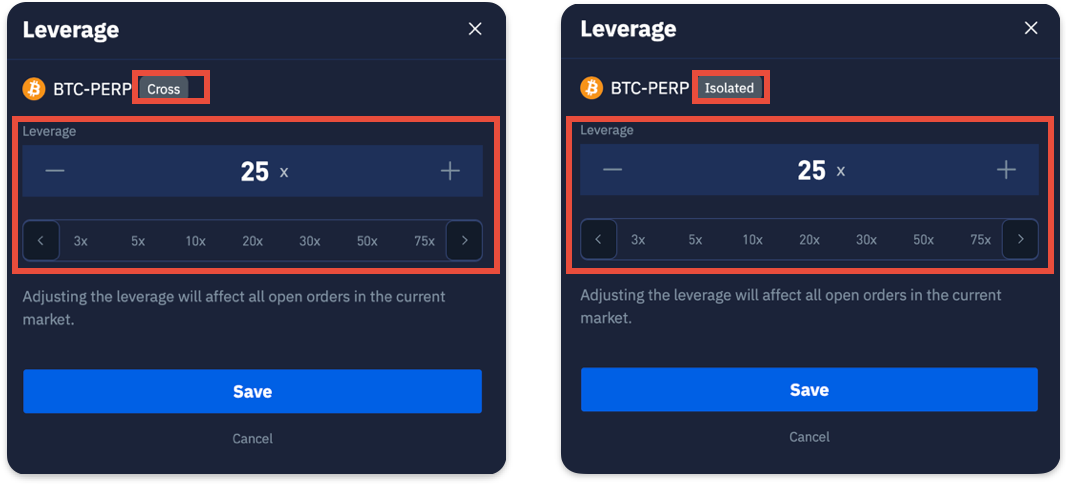 Leverage - Cross: 100x leverage; your margin will draw upon funds in your Cross Wallet.