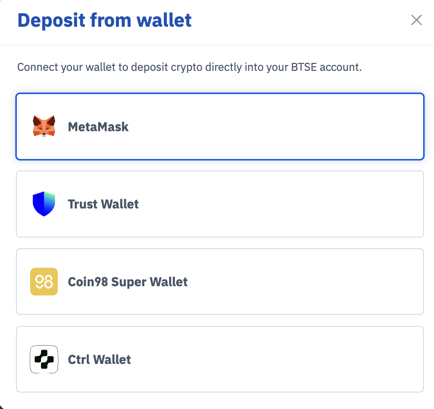 You can deposit crypto into your account directly from MetaMask by following these steps:
