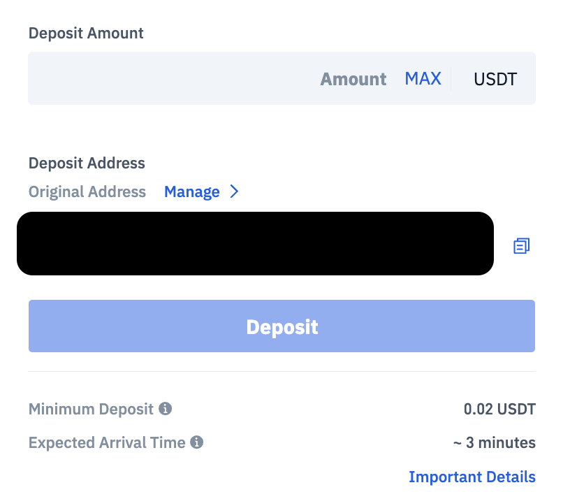 Make sure this matches the network selected in your MetaMask wallet. Depositing via the wrong network may result in loss of funds.