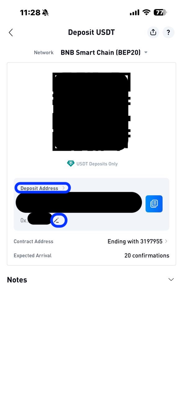 3. Select "Deposit Address" to manage your addresses, or the pencil symbol to rename your Deposit Address