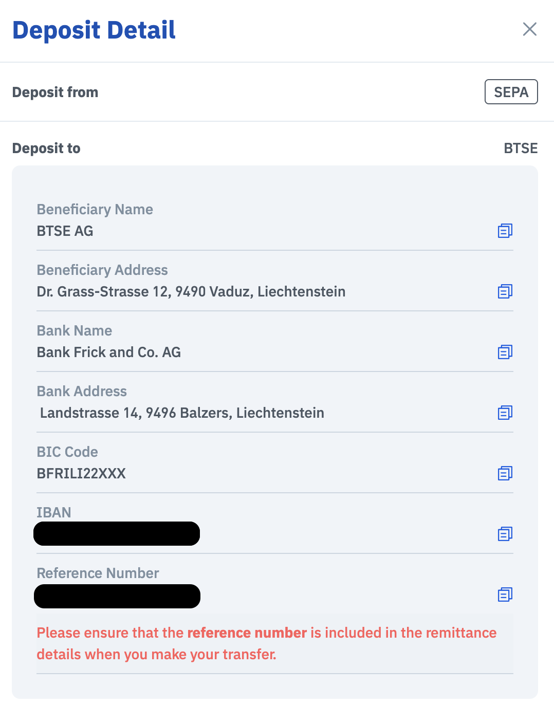 You can deposit EUR currency into your account using SEPA. Follow the steps below to get started.