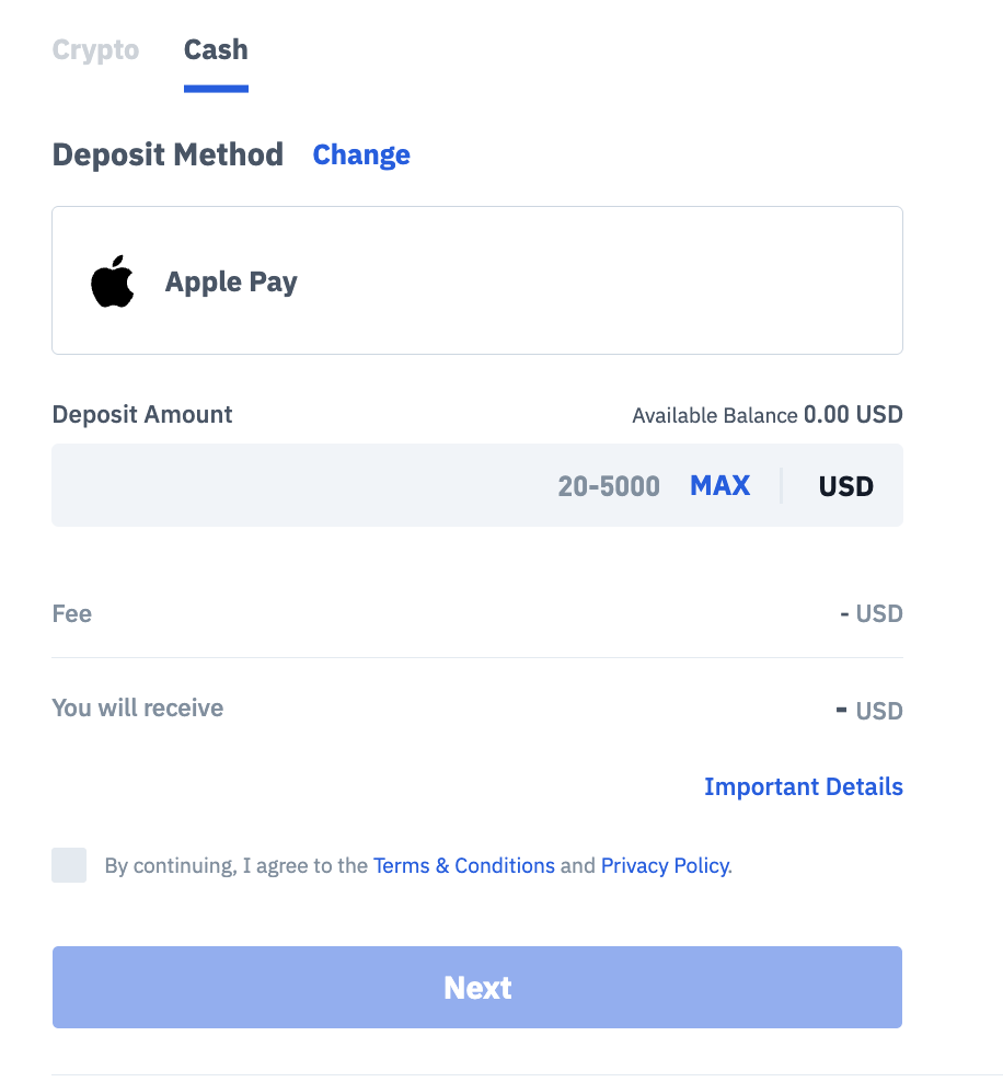 How to deposit fiat currencies via Google Pay or Apple Pay?