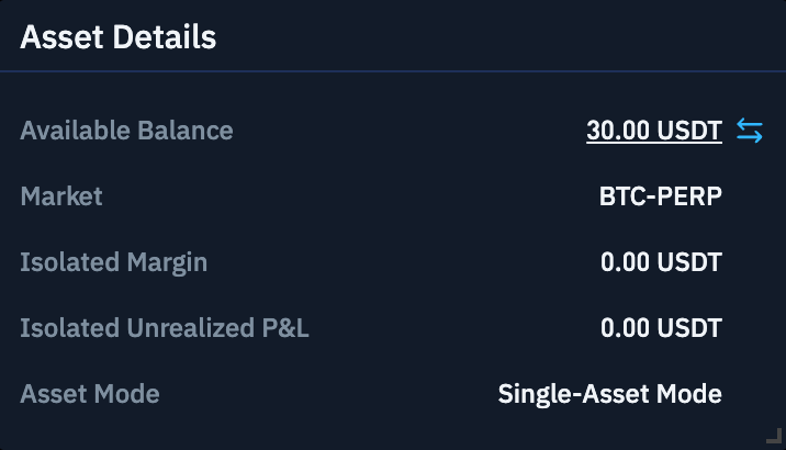 资产详情页面将根据您选择的杠杆模式显示全仓钱包(CROSS)或逐仓钱包(BTCPFC)。