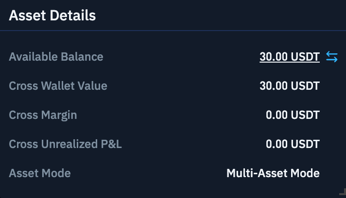资产模式:多资产模式,可使用多种保证金资产,仅支持全仓保证金模式
